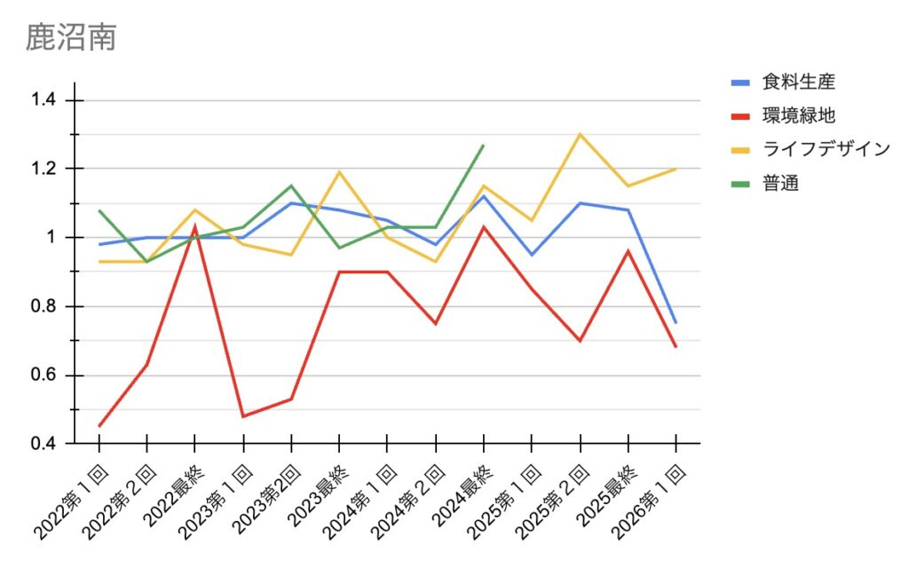 | 鹿沼 | 240⇒200 | 1.38 | 1.25 | 1.2 | 1.25 | 1.13 | 1.04 | 1.38 | 1.27 | 1.21 | 1.40 | 1.17 | 1.14 | ★1.37 |