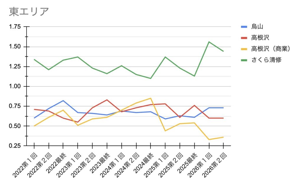 | さくら清修 | 240⇒200 | 1.17 | 1.21 | 1.33 | 1.37 | 1.23 | 1.16 | 1.26 | 1.15 | 1.11 | 1.37 | 1.23 | 1.13 | ★1.56 | ★1.44 |