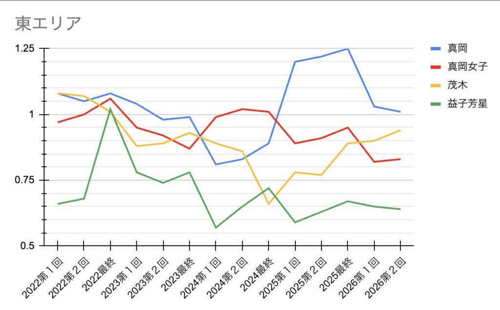 | 宇都宮中央 | 240 | ★2.57 | ★2.20 | ★1.88 | 2.42 | 1.89 | 1.54 | 2.68 | 2.15 | 1.72 | 2.60 | 2.16 | 1.58 | 2.23 | 1.81 |
