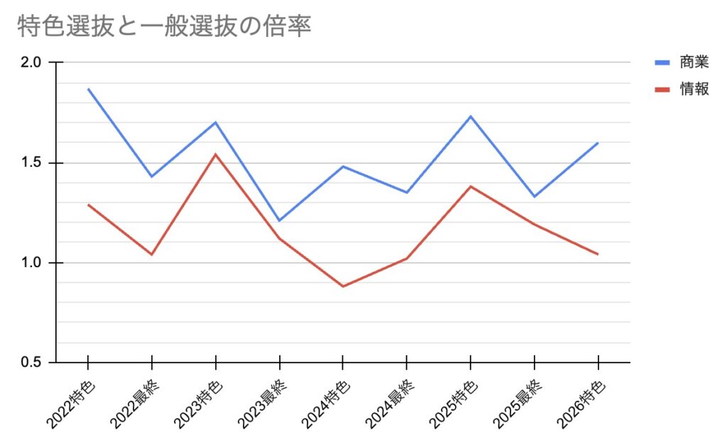 中には、特色選抜と一般選抜の倍率がほぼ変わらない高校もあります。