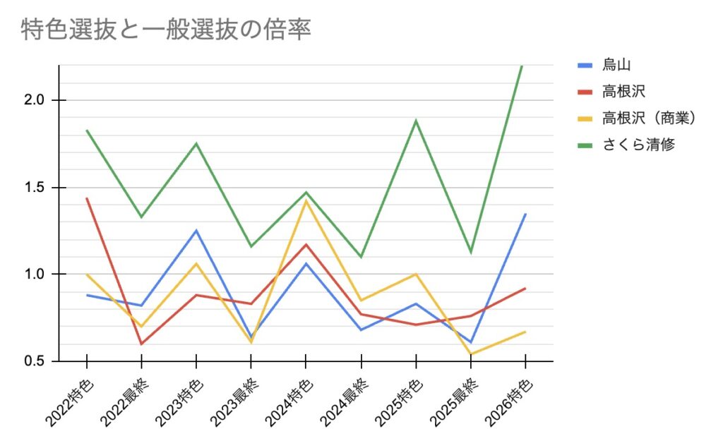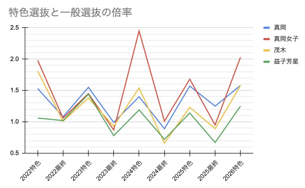 一般選抜の倍率を見て、安心して特色選抜を受けられる!という感じなのでしょうか。