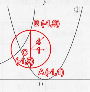 ①、②でxが1から3までの間変化の割合が同じということは、yの増加量が同じであればよいので。