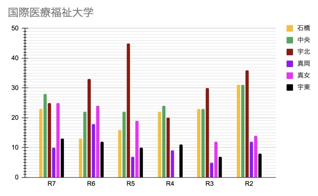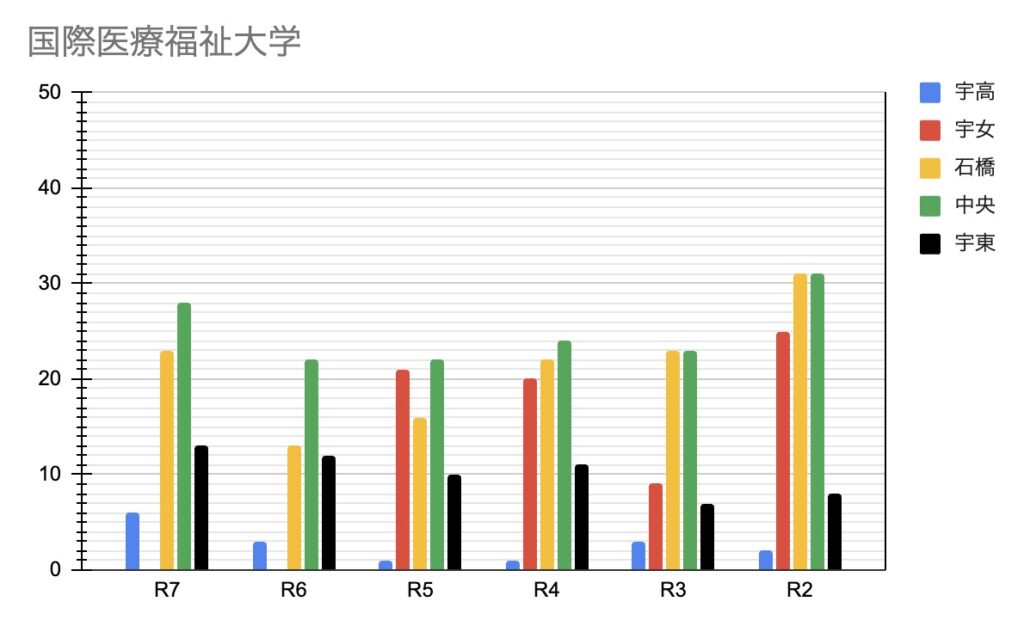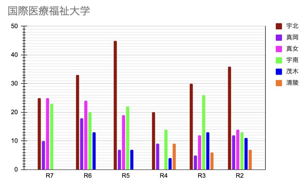 宇都宮南高等学校も合格者数だけを見ると、だいぶ国際医療福祉大学に進むことができるようになります。